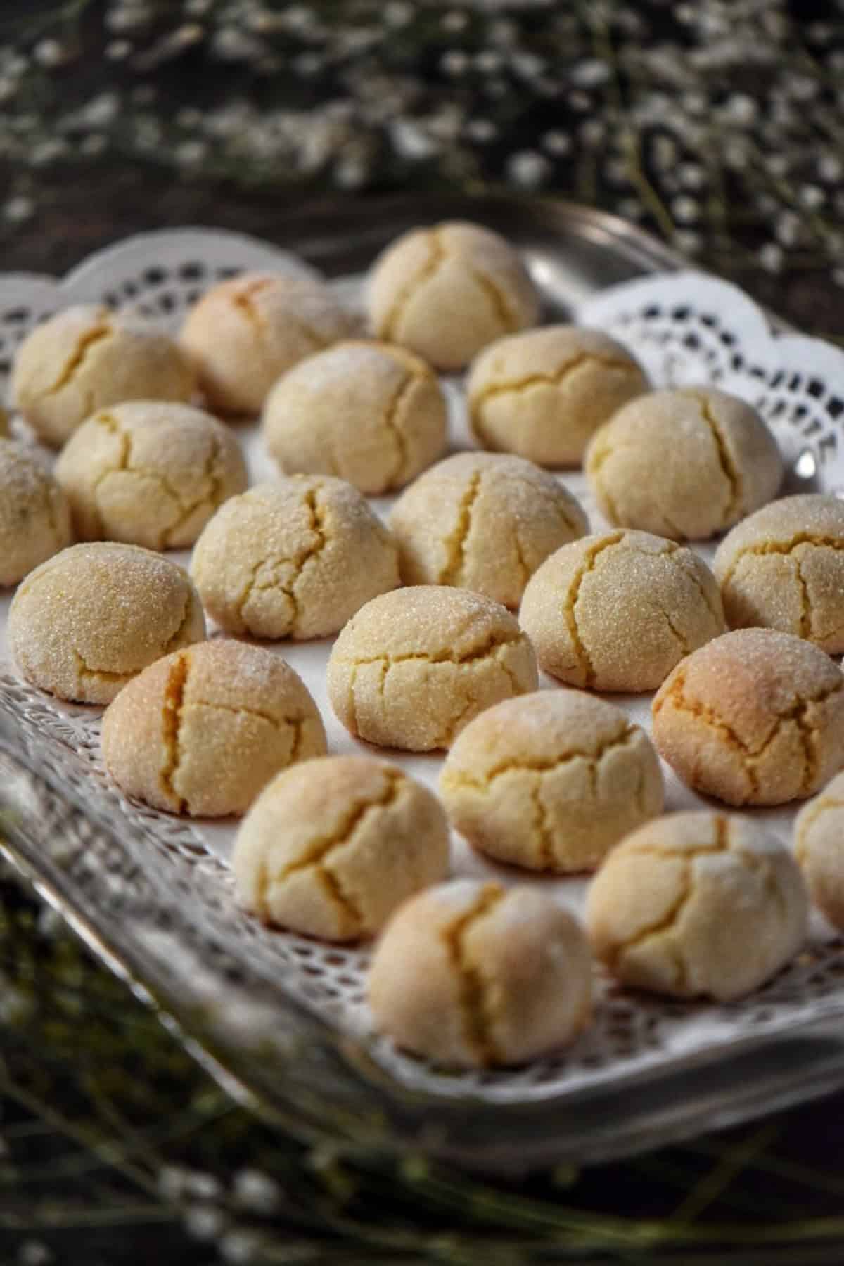 For a smooth, chewy texture, use finely ground almond flour (not almond meal). Almond flour is blanched, which gives it a finer consistency that's perfect for these chewy Italian cookies. For the best results, always weigh your ingredients, especially the egg whites. Accurate measurements help achieve the right consistency in the dough, preventing cookies from going flat or spreading too much during baking. Before baking, roll the dough balls in granulated sugar to help form a crisp exterior. This will also help create the signature cracks on the surface of the cookies. Baking times can vary depending on your oven, so keep an eye on your cookies towards the end of the baking time. You want them lightly golden around the edges with the classic cracks on top.